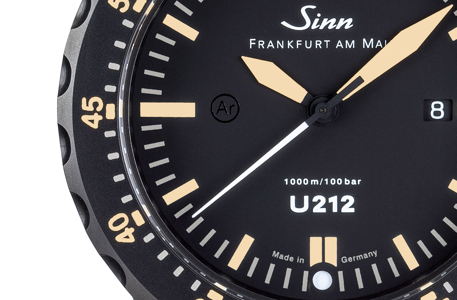Sinn ligne de plongée de la marque de montres ont tous cas en résistant à un alliage d'acier de la corrosion utilisé pour les sous - marins de la marine allemande. Juste présenté à Baselworld 2015 , le dernier modèle de ce line-up est le U212 SE, avec la plus grande affaire Sinn fait pour sa plongée montres à 47 mm de diamètre. Surface durcie avec le processus de Tegiment propriétaire de Sinn, le boîtier en acier de sous - marin est également PVD revêtu d'une couche céramique noire pour la résistance à la rayure exceptionnelle.